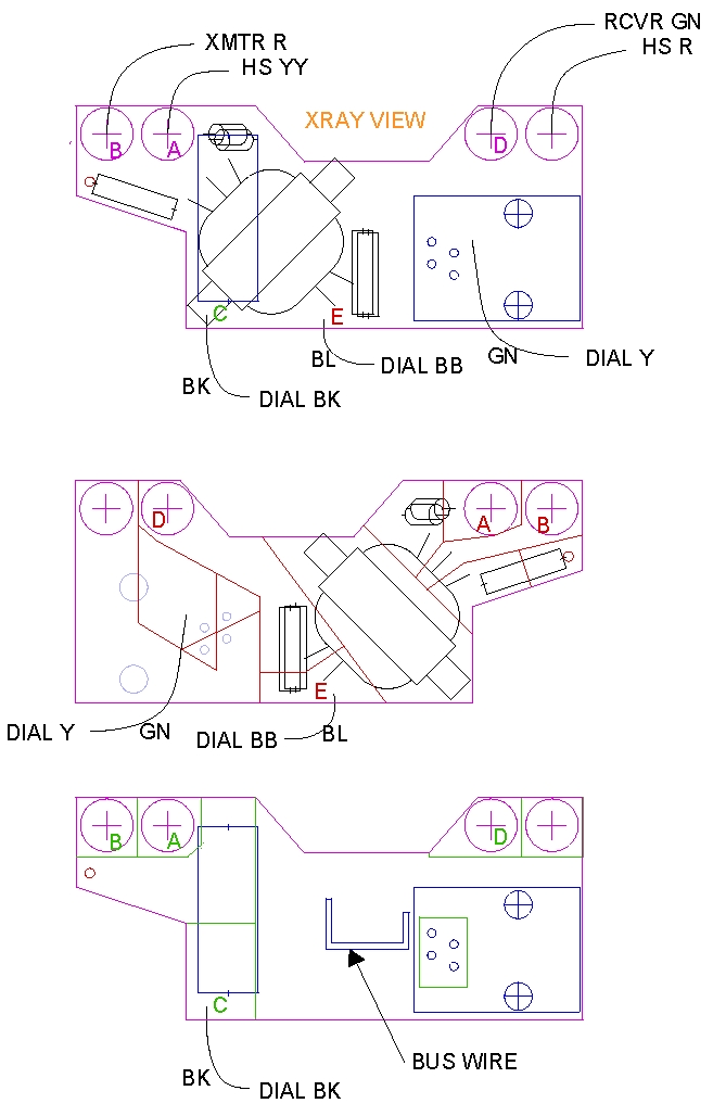 Because there were no terminals to make connections I wanted, I decided to build the terminals into the board. The terminals were made by winding tinned wire-wrap wire aroung a 4-40 screw and soldering the wire. The wire-wrapped screw was then inserted into a hole in the board and the track on both sides of the board were soldered to the wire wrapped around the screw. When the screw was removed, and the solder on the tracks was filed flat, a threaded terminal was left.