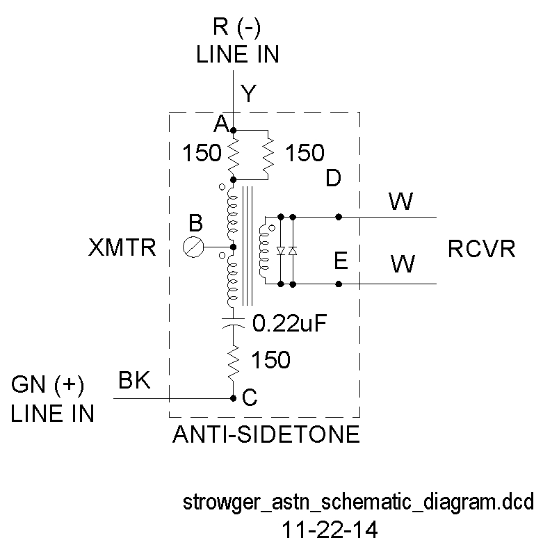 There is not much room in the base of this phone, and there is a wiring diagram glued to the bottom plate of the base. Preservation of the wiring diagram meant that the antisidetone board could not be adhered to the bottom plate with tape, so a small low-profile board had to be built that could be held in place by a counter sunk screw in an unused terminal. The transformer is recessed into the board to keep the profile as low as possible. Other than that, the board is similar to the other boards and was made by scoring two parallel lines on the the copper with an Xacto knife for each needed separation, then peeling the copper between the lines off of the circuit board. After the separations were made, the board was sanded, and then, tinned using a water-soluable solder paste. Components were surface mounted. A pigtail modular plug was used with a 20-inch cord, short enough so I would not have an unsightly wire lying around where the phone is displayed, but long enough to plug in to a counter-level socket for testing and demonstrating. Young people just don't believe these old phones still work.