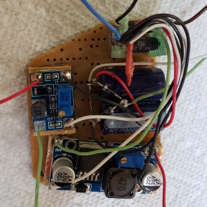 To keep the voltage at 3.48 volts so the headlight current stays at 300mA when bike speed increases, I used a buck regulator . The buck regulator also feeds 3.48 volts to a boost regulator that supplies 4.4 volts to the taillight circuit.