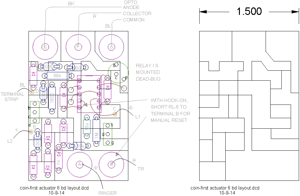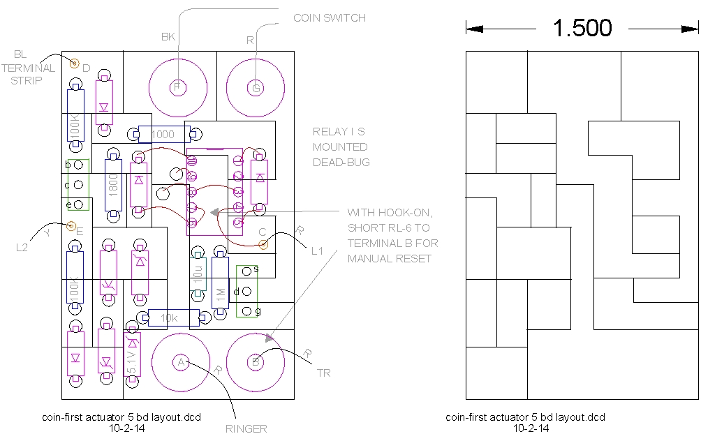 I decided to repackage the phone to put the 101A network and the type 46 ringer on a board in the coin box. There would also be room on the board to put a coin-detector circuit board to possibly simulate the original phone coin sequence using relays and a photo sensor.