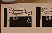 The PCB is ready to etch! Note the very clean image. No melting or blurring at all! |