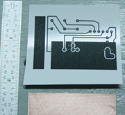 with alcohol or similar. My Jet Printed circuit is shown here next to a small, prepared board. |