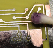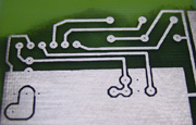 pin-holes or etchant bleed. These are 20 mil traces. Overall, a great way to make simple PCB's at home with confidence! |