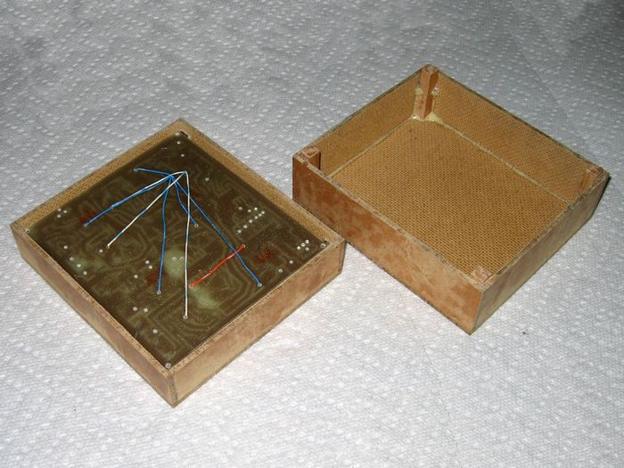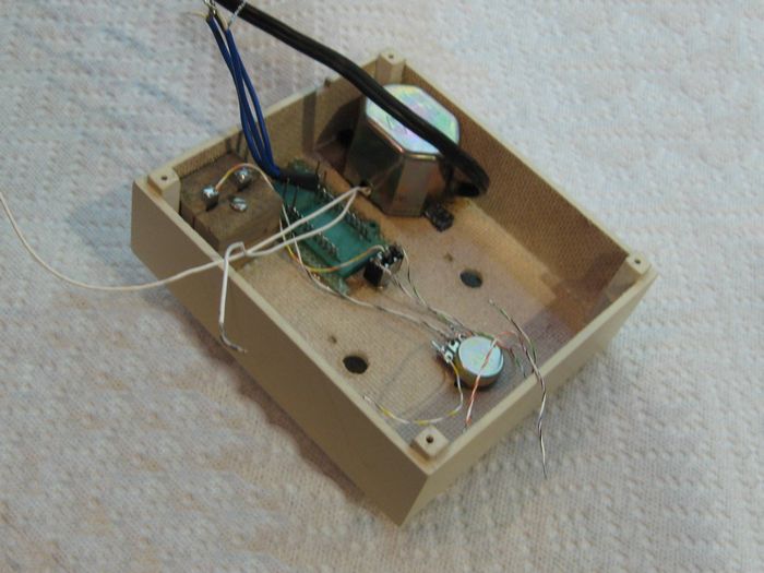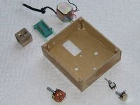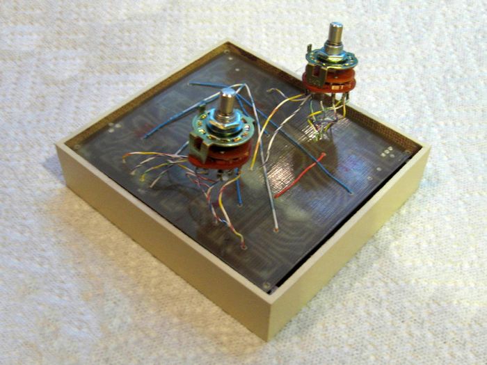 I should have used double-sided board or planned layout to better fit an available box size. What I got was a 4.25" x 4.75" board. When you add a 12V transformer ( I don't like wall warts), two rotary switches, the test terminals,and the voltmeter terminals the adapter box is pretty big and there is a lot of wasted space in standard boxes. What to do?